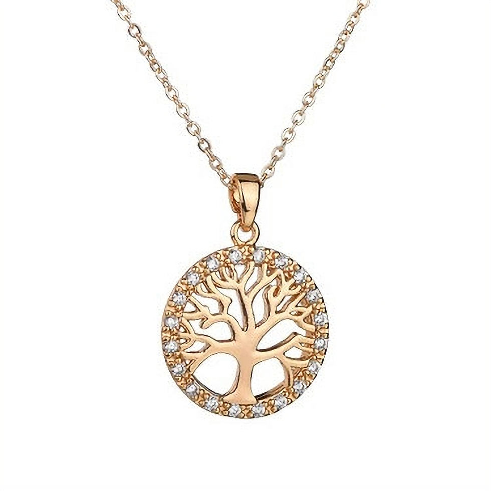 Lebensbaum Anhänger Halskette mit Zirkonia-Umrahmung